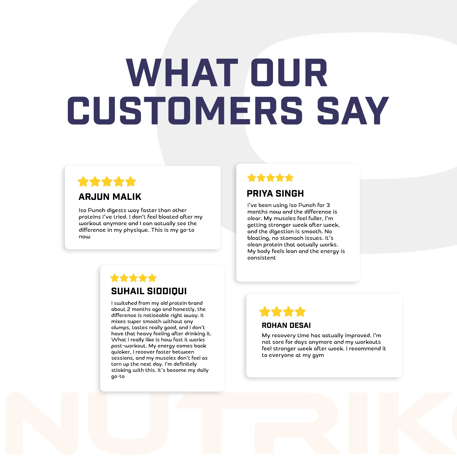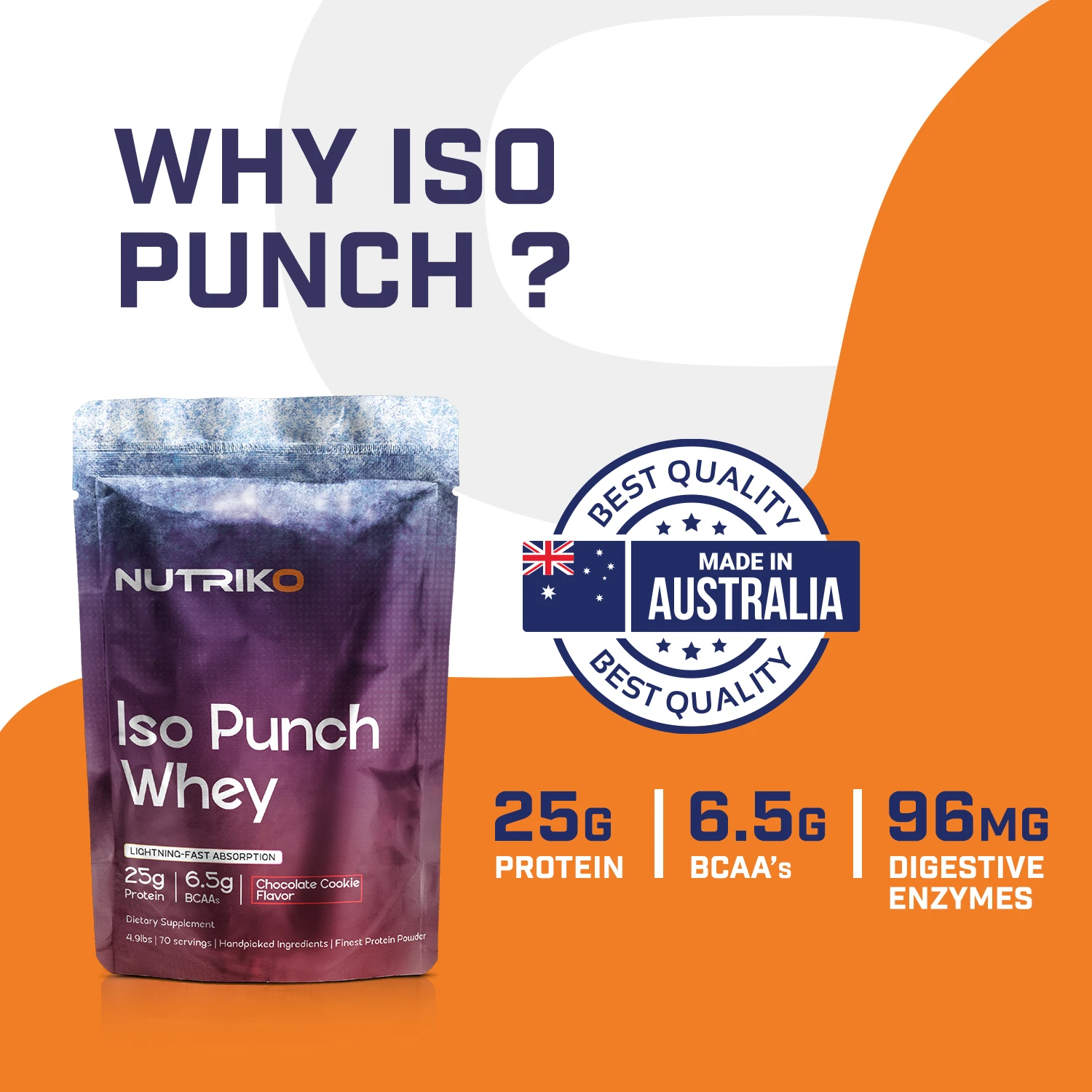Iso Punch Whey by Nutriko is a premium, fast-absorbing whey protein isolate formula built to fuel muscle recovery, strength, and growth. Designed for athletes, lifters, and fitness enthusiasts who refuse to compromise on quality, Iso Punch delivers pure, high-quality protein with rapid absorption to support your post-workout recovery and lean muscle development.